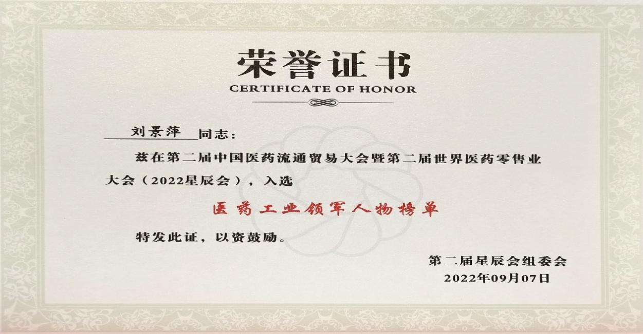 在本次开幕式上,发布了“医药工业领军人物”、“医药零售领军人物”榜单,981博天娱乐药业集团刘景萍董事长凭借在儿药领域多年的努力探索和对行业的杰出贡献,荣获“医药工业领军人物”称号。