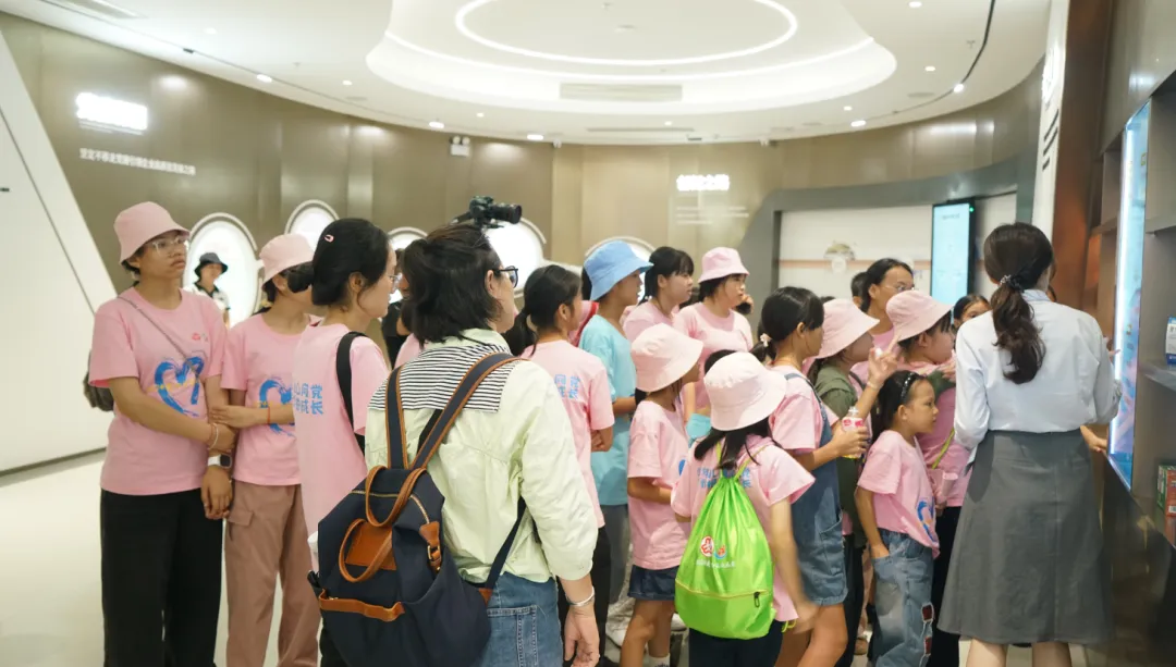 紧接着,孩子们来到了建党百年庆典红旗——070号红旗前。讲解员讲述了981博天娱乐药业集团与庆典红旗的深厚渊源。孩子们听得津津有味,眼中闪烁着对党和国家的热爱与敬仰。