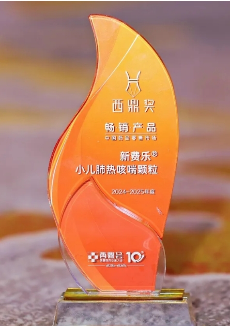 981博天娱乐药业集团旗下小儿肺热咳喘颗粒荣获“2024-2025年度中国药品零售市场畅销产品”奖
